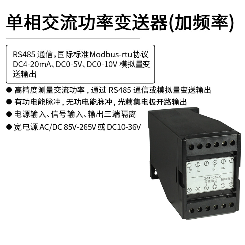單相交流功率變送器(加頻率) RS485 Modbus-rtu通信