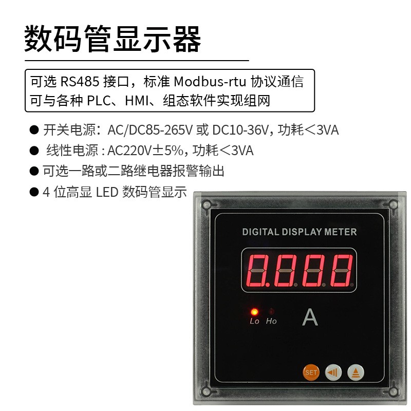 HY195系列數(shù)碼管顯示器,采用4位高顯LED數(shù)碼管顯示,通過RS-485數(shù)字接口送顯示數(shù)值,采用國(guó)際標(biāo)準(zhǔn)的modbus-rtu協(xié)議,可以與各種PLC、HMI、組態(tài)軟件實(shí)現(xiàn)組網(wǎng)。可選一路或二路繼電器報(bào)警輸出,實(shí)現(xiàn)上下限、上上限、下下限報(bào)警功能或遙控功能。