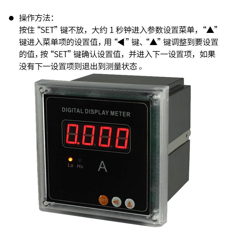 ④、Lo下限報(bào)警指示,Lo上的指示燈亮,表示超過下限。