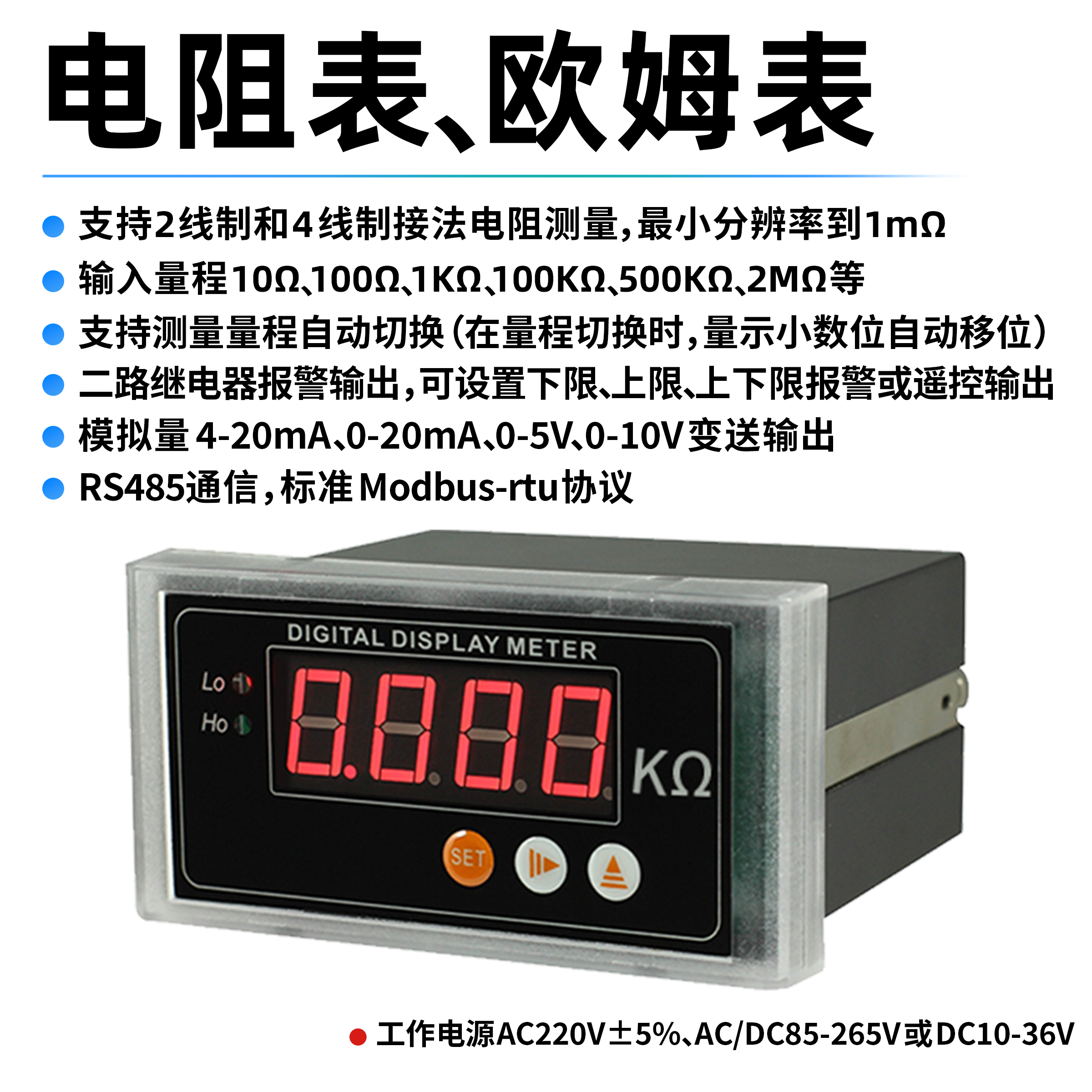 (7) 電阻量程對應(yīng)顯示值可設(shè)。