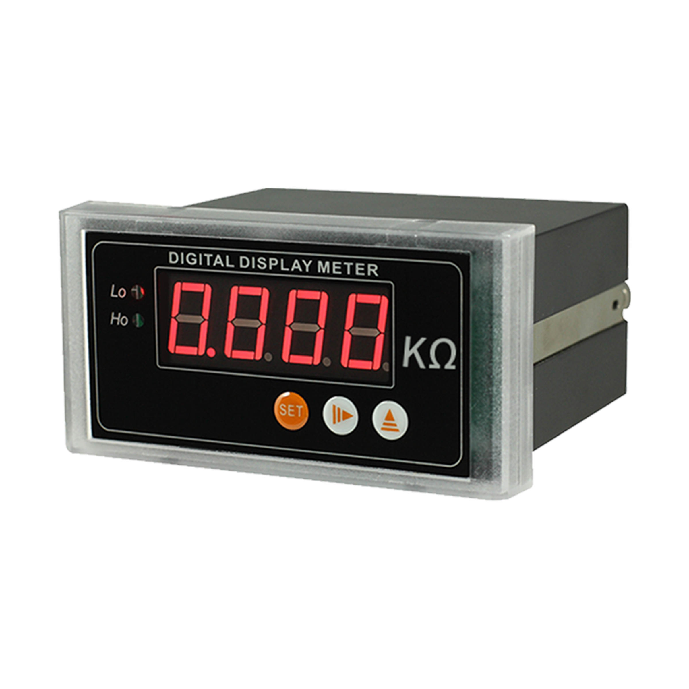 一個電阻量程5KΩ,對應(yīng)長度900mm位移傳感器,配一個電阻量程5KΩ電阻表,設(shè)置:顯示小數(shù)點(diǎn)位Dot=1,最小輸入信號對應(yīng)顯示值NNIn=000.0,最大輸入信號對應(yīng)顯示值NNah=900.0,顯示長度最小分辯率為0.1mm,儀表顯示和傳感器實(shí)際長度對應(yīng)。